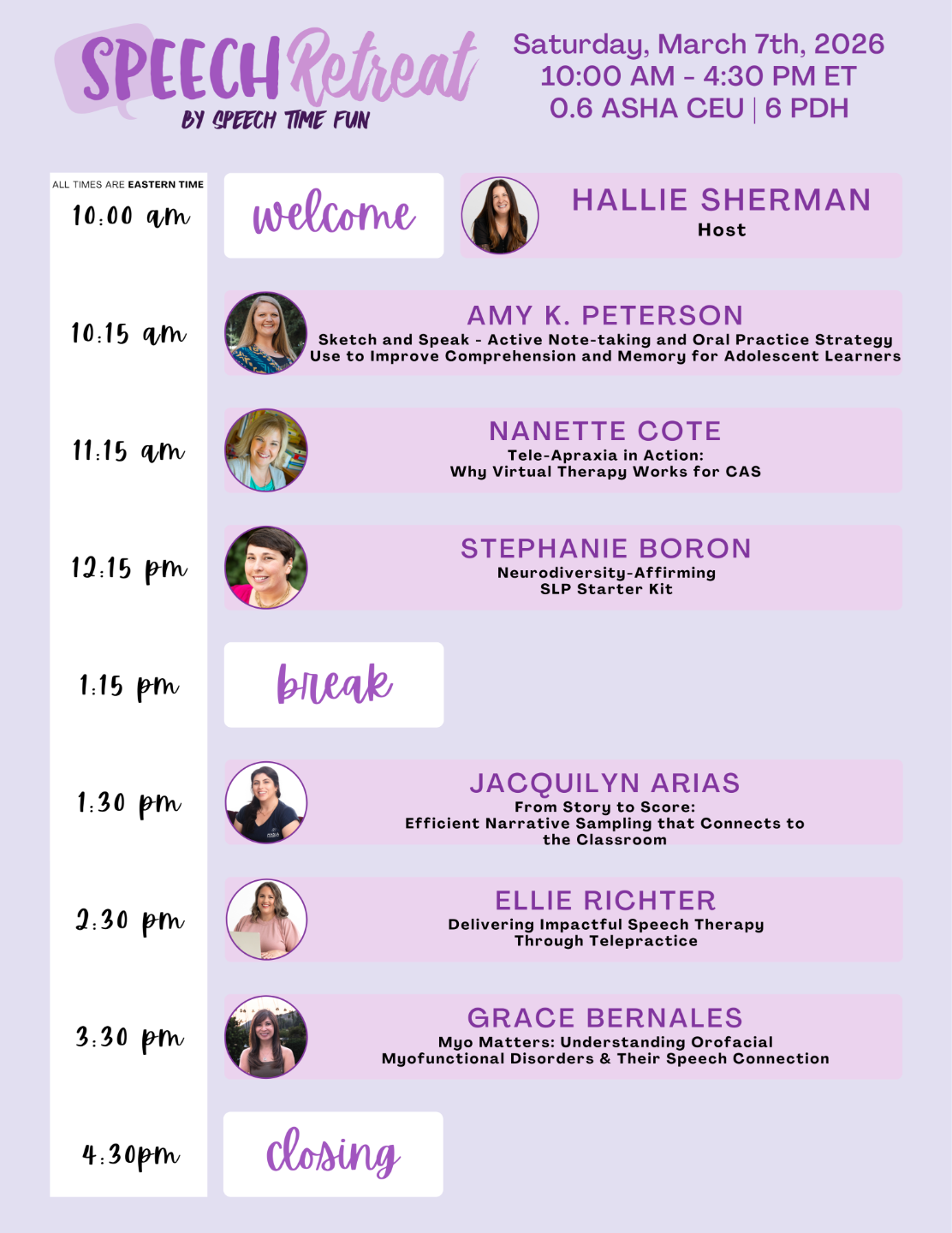 Access to an exclusive Facebook group just for Speech Retreat where we share tips, resources, and fun giveaways